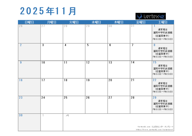※10月からは富岡中学校(旧富岡東中学校)武道場で毎週土曜部午後6:00〜9:00が通常稽古となります。